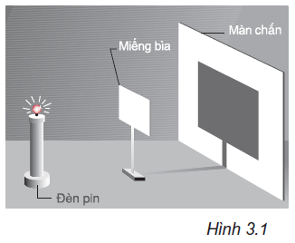 Đặt một nguồn sáng nhỏ (bóng đèn pin đang sáng) trước màn chắn. Trong khoảng từ bóng đèn đến màn chắn, đặt một miếng bìa.