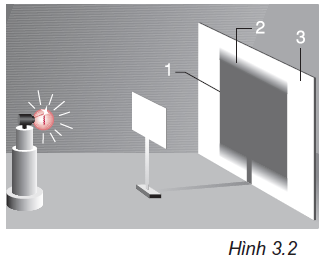 + Trên màn chắn vùng được chiếu sáng đầy đủ là vùng số 3. Vùng này sáng vì nó nhận được đầy đủ ánh sáng từ nguồn sáng truyền tới.