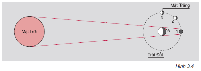 - Khi Trái Đất nằm giữa Mặt Trăng và Mặt Trời, Mặt Trăng bị Trái Đất che khuất, nó không nhận được ánh sáng từ Mặt Trời chiếu đến nên ta không thể nhìn thấy Mặt Trăng. Ta nói khi đó xảy ra hiện tượng nguyệt thực.
