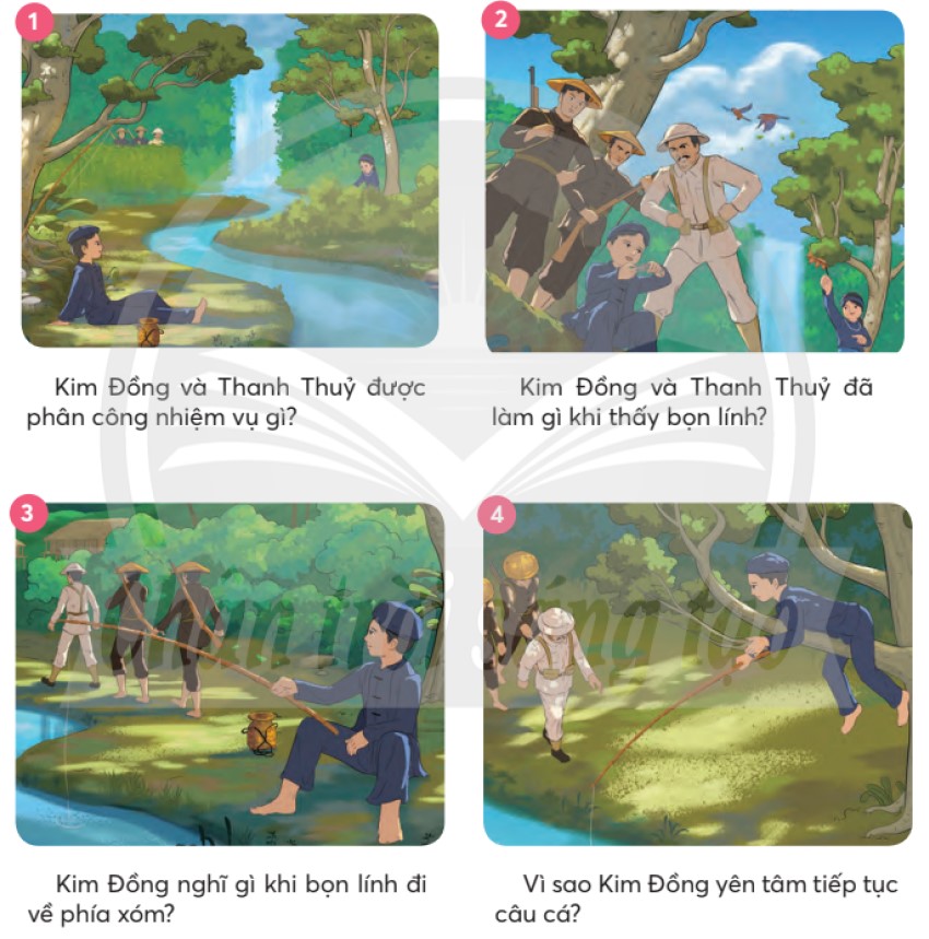 Kể từng đoạn của câu chuyện theo tranh và các câu hỏi gợi ý dưới tranh.