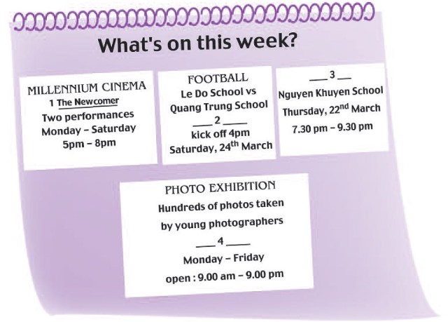 1. Hãy nghe hội thoại rồi điền vào mỗi chỗ trống trong quảng cáo sau một cụm từ thích hợp cho trong khung.