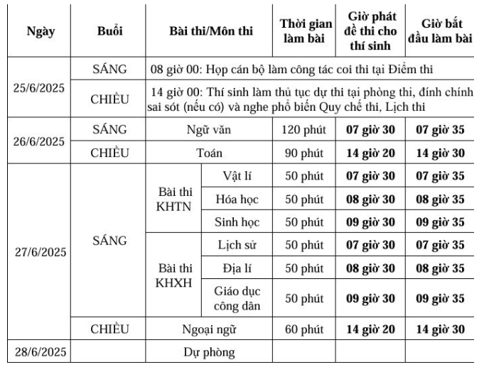 Lịch thi tốt nghiệp THPT năm 2025 đối với các thí sinh dự thi với Đề thi của Chương trình giáo dục phổ thông hiện hành như sau: